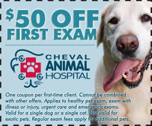 New clients: print this coupon to receive $50 off Comprehensive Physical Exam for your dog or cat on your first visit!